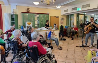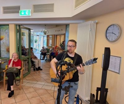 Heute Nachmittag hatten wir ein besonderes musikalisches Erlebnis mit Stephan, unserem Musiker. Mit viel Freude und Begeisterung haben wir gemeinsam bekannte Lieder aus den 70er Jahren gesungen und uns mit bunten Tüchern dazu bewegt. Die Stimmung war heiter und voller Vorfreude auf unser bevorstehendes Sommerfest. Ein rundum gelungener Nachmittag!