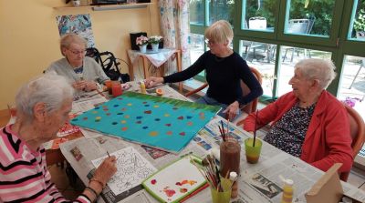 In unserer Kreativrunde treffen sich unsere Bewohnerinnen und Bewohner regelmäßig zum Malen, Basteln und Spielen.