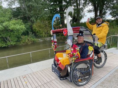 Auch in diesem Jahr war Thomas wieder mit seiner Rikscha bei uns unterwegs, quer durch Garching, über die Felder oder mitten durch die Stadt, ganz nach den Wünschen unserer Bewohnerinnen und Bewohner.