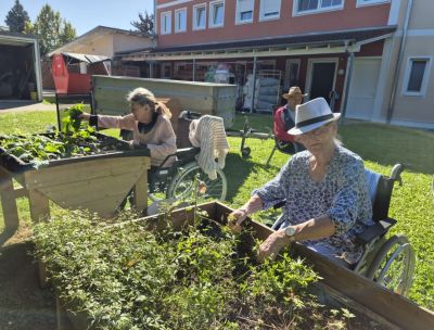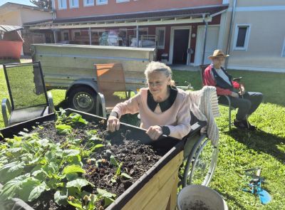 Die Hochbeete wurden gesäubert, Unkraut entfernt und mit einem kleinen Rechen wurde die Erde aufgelockert.