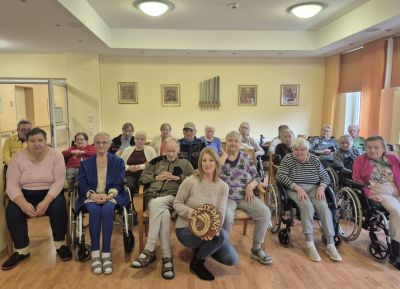 Einrichtungsleitung Frau Venus segnete das schöne Erntedankbrot und schnitt es an. Sie bereitete für unsere Bewohner/innen Butterbrote mit Schnittlauch vor, diese voller Genuss verzehrt wurden.