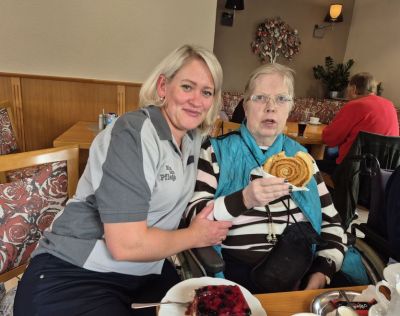 Am vergangenen Mittwoch unternahmen unsere Bewohner/innen einen besonderen Ausflug: Gemeinsam mit Betreuungskräften ging es ins nahegelegene Café Wagner, um dort bei Kaffee und Kuchen einen gemütlichen Nachmittag zu genießen.