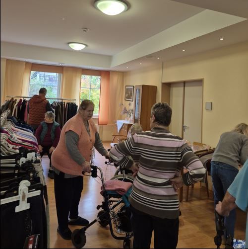 Chick in Strick war letzte Woche im Haus und die Bewohner/innen bestaunten das vielfältige Angebot.