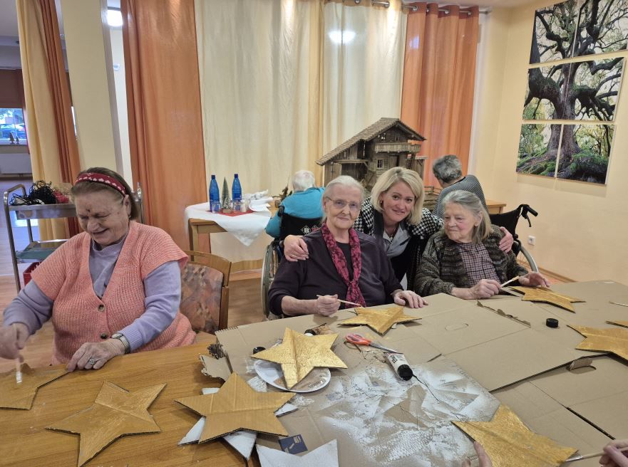 Gemeinsam mit unseren Bewohnerinnen und Bewohnern haben wir liebevolle Tischdekorationen für die diesjährige Weihnachtsfeier gebastelt.