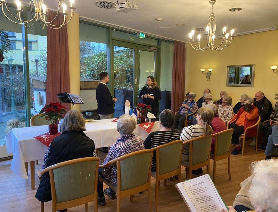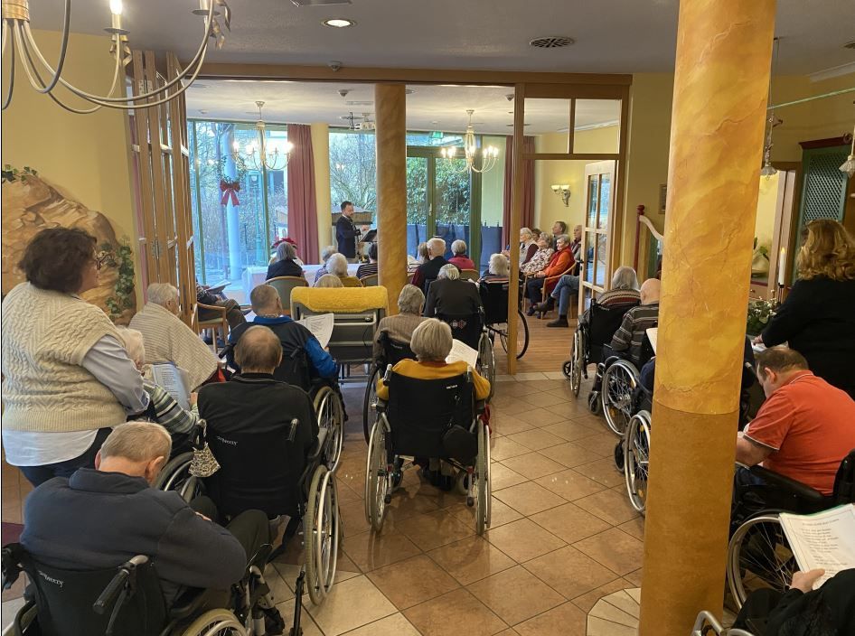 Am Nachmittag des 11.12. besuchte uns der Taufkirchner Bürgermeister Haberl mit seiner Trompete. Gemeinsam mit den Bewohnern wurde weihnachtlich musiziert. Natürlich ließ Herr Haberl es sich nicht nehmen noch Wünsche von unserem Wunschbaum zu erfüllen.
