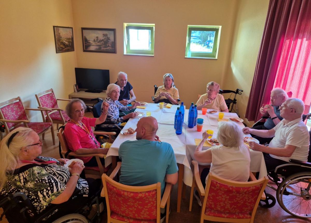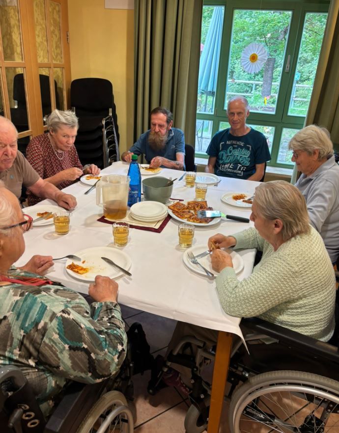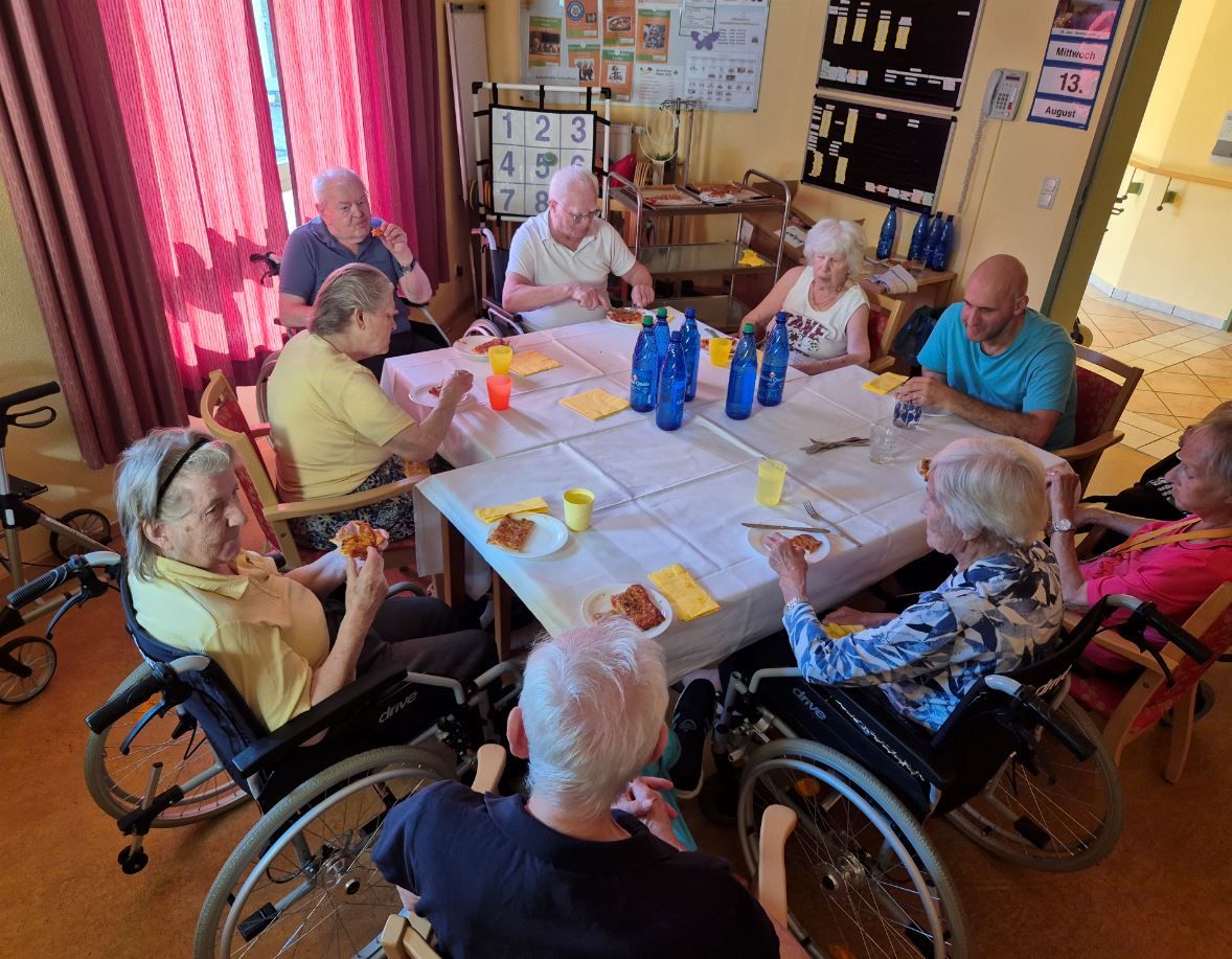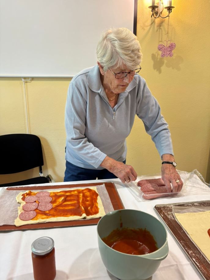 Wir veranstalteten für die Bewohner einen italienischen Abend mit selbst belegter Pizza.