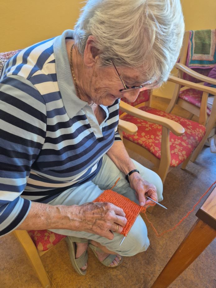 Unsere ehrenamtlichen Helferinnen kommen 2-3 x im Monat und stricken gemeinsam mit unseren Bewohner/innen.