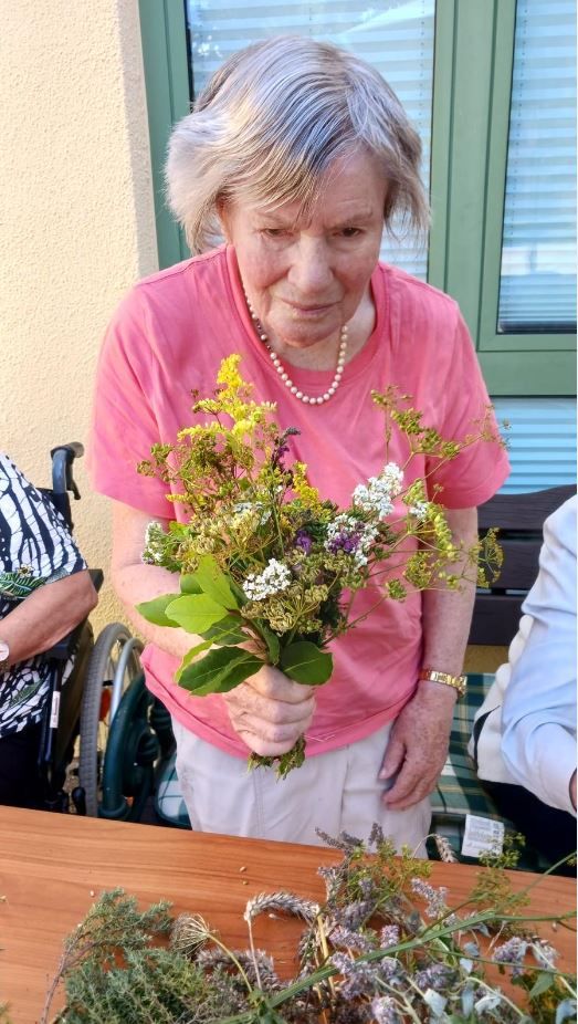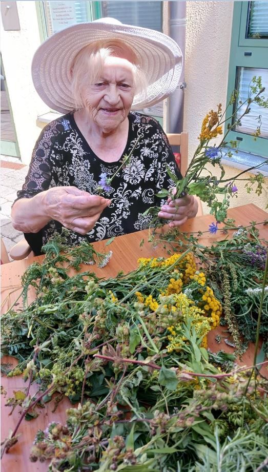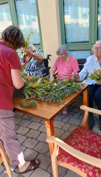 Unsere Bewohner haben für Mariä Himmelfahrt Kräuterbuschen für alle Stationen gebunden.
