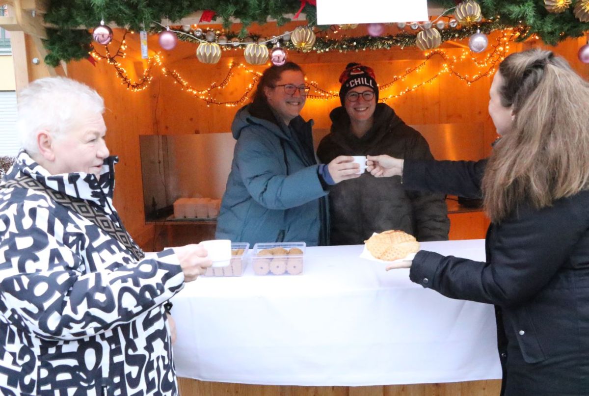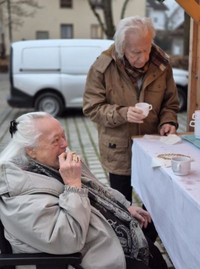 Wir haben selbstgemachte Waffeln und Punsch verkauft. Unsere ehrenamtliche Jutta hat mit ihrer Freundin uns unterstützt und selbstgestricktes verkauft. Vielen Dank an alle, die vorbeigeschaut haben!