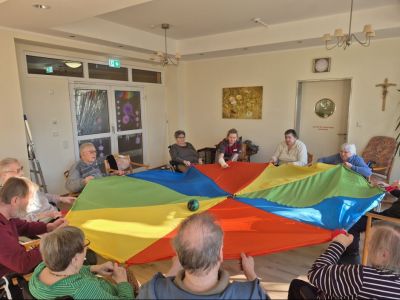 Mit großen Schwungtuch-Bewegungsübungen kam der ganze Körper in Schwung, was nicht nur die körperliche Aktivität, sondern auch das Wohlbefinden spürbar gefördert hat.