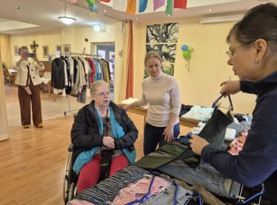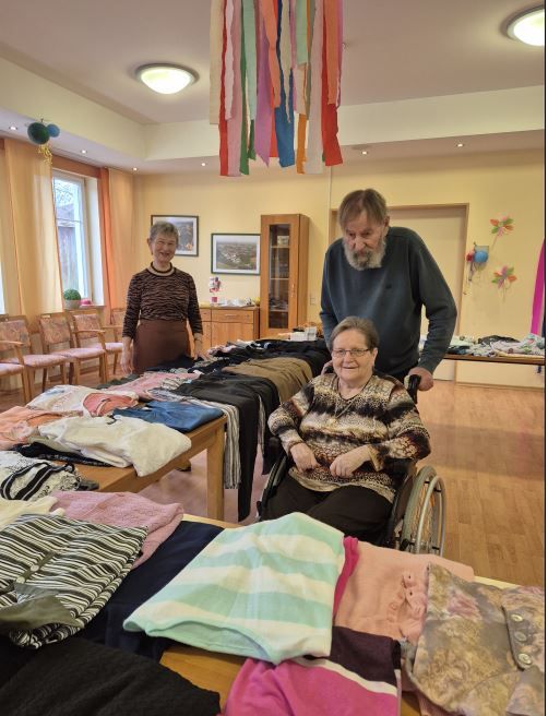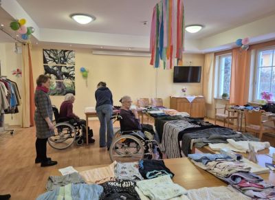 Die Ware wurde auf Tischen und Kleiderständern präsentiert, so dass die Bewohner gemütlich durchschlendern konnten.