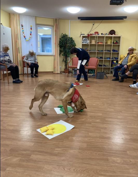 Die Freude war groß, nachdem es hieß Anton kommt…. Eine gute Stunde verbrachten die Senioren und der Therapiehund vom BRK gemeinsam.