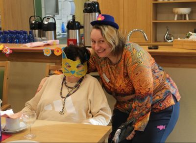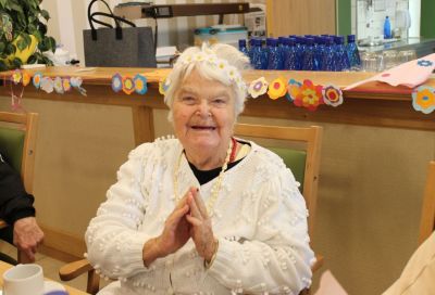 Getreu dem Motto „70er Jahre“ verkleideten sich unsere Mitarbeiterinnen der sozialen Betreuung; bastelten Dekoration mit den Bewohner*innen und backten Plätzchen im Vorfeld.