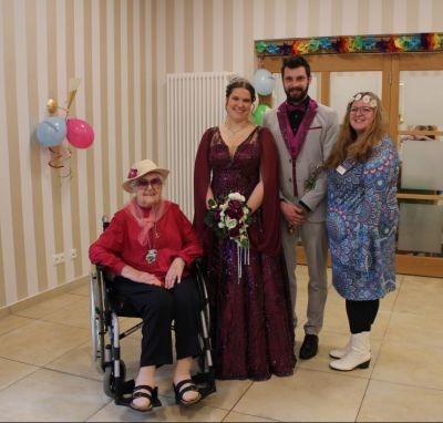 Ein Highlight war wie jedes Jahr: Der Auftritt der Jugendgarde und des Prinzenpaares der Trifteraner, die für eine unsere Bewohnerinnen sogar einen Orden dabei hatten.