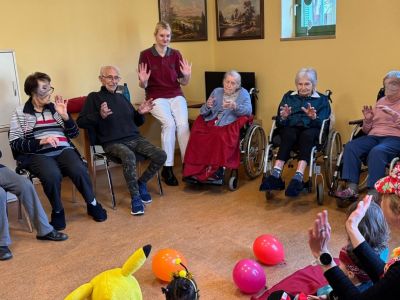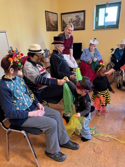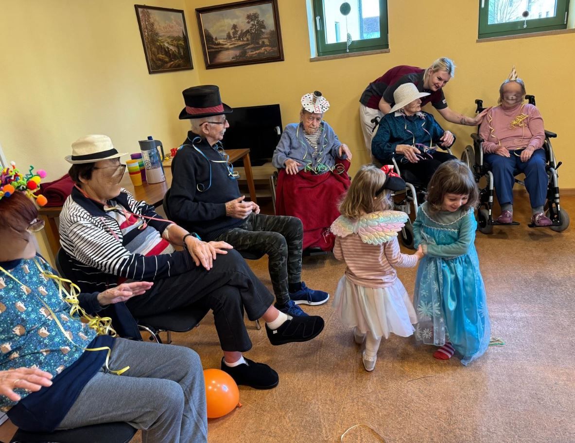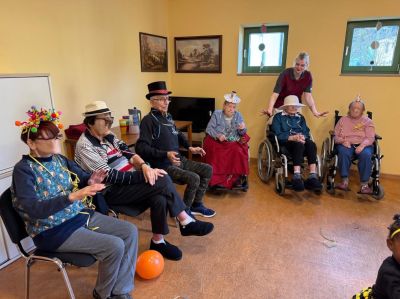 Im Februar war Tagesmama Eva mit den Kindern wieder zu Besuch bei uns. Sie haben passend zu unserer Faschingswoche auch das Thema Fasching aufgegriffen. Unsere Bewohner aus Hallbergmoos hatten sichtlich Spaß dabei.