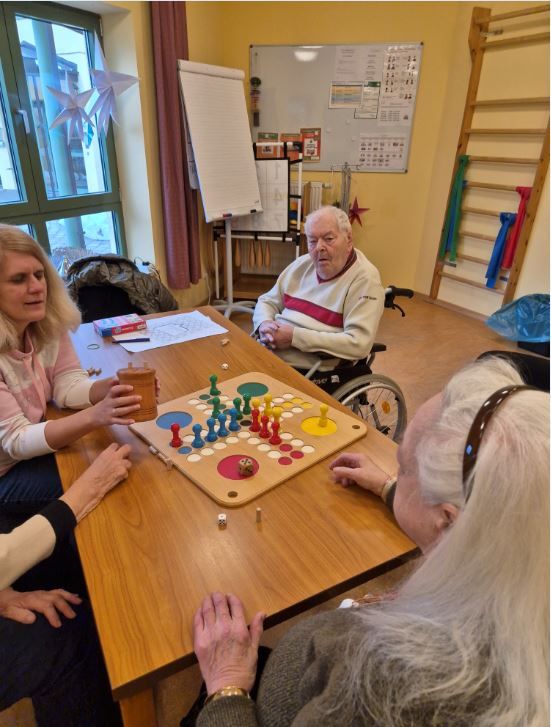 Unsere Ehrenamtliche Andrea kommt einmal in der Woche zu einem Spielenachmittag vorbei.