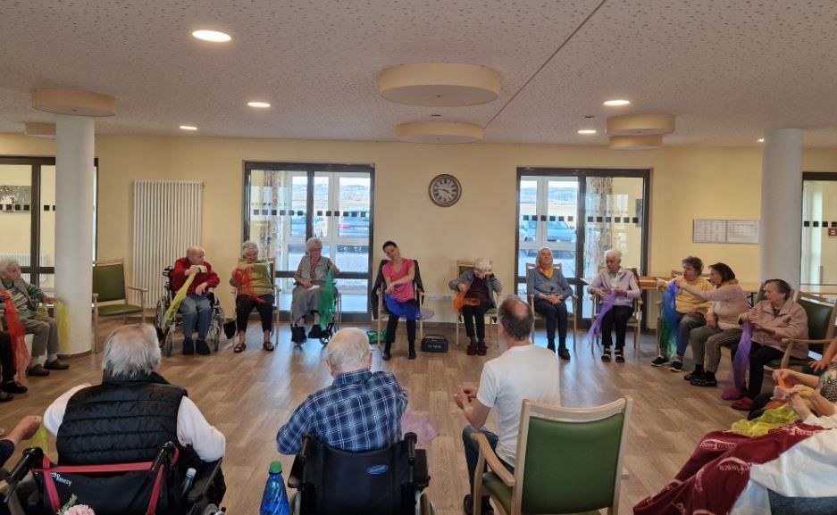 Am Freitag, den 21.03.2025, kamen Evi Ransberger und ihr Tanzpartner Peter vom TSC Dingolfing zu Besuch. Die beiden gestalteten unseren Bewohnerinnen und Bewohnern einen schönen Freitagnachmittag mit verschiedenen Sitztänzen. Die Bewohnerinnen und Bewohner zeigten große Freude und bewiesen einmal wieder, das Tanzen kein Alter kennt!