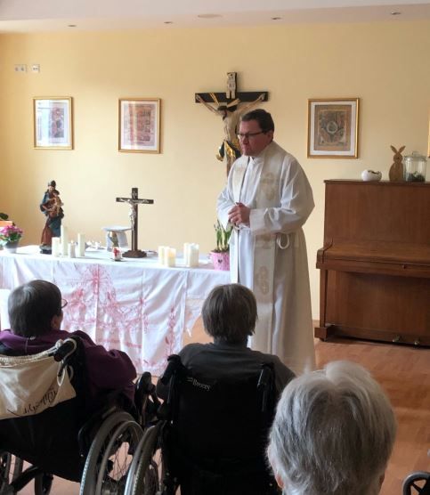 Für viele Heimbewohner ist der Gottesdienst und der Kontakt mit dem Priester ein wichtiger Fixpunkt im Heimleben. An Mittwoch,den 12.03.2025 besuchte uns Pfarrer Thiel, um einen Gottesdienst abzuhalten. Viele unserer Bewohner versammelten sich im Festsaal, um gemeinsam den Segen Gottes zu empfangen.